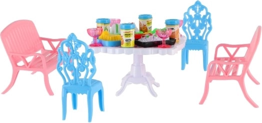 Pretvorite vrt ili terasu kućice u ugodnu blagovaonicu. Set namještaja za lutke nudi sve za zajedničke gozbe – od stola i sjedenja do bogate opreme za stolovanje. Zahvaljujući laganoj plastici dijelovima je lako rukovati, a djeca mogu vježbati koordinaciju i igru uloga.