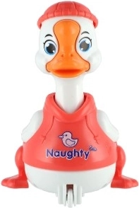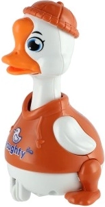 Jednostavan inercijski mehanizam: pritisni glavu patkice i ona će krenuti naprijed bez baterija. Sjajna zabava i razvoj motorike.