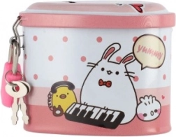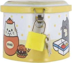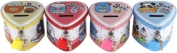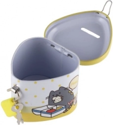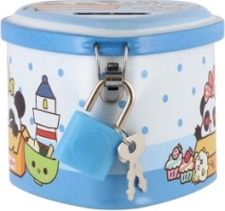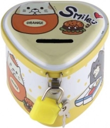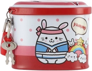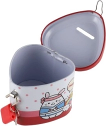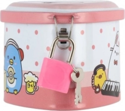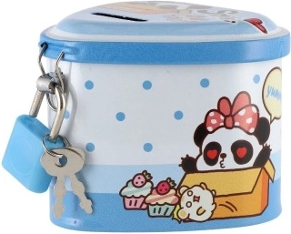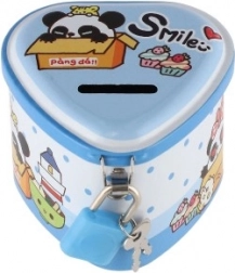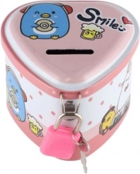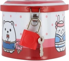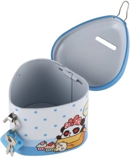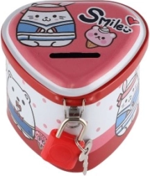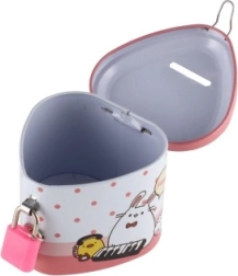 Ova dječja limena kasica u obliku srca spaja privlačan dizajn s praktičnim funkcijama. Zahvaljujući čvrstom metalnom kućištu i visećem lokotu s ključićima pruža sigurno mjesto za ušteđevinu, dok šarene ilustracije motiviraju djecu na redovitu štednju.