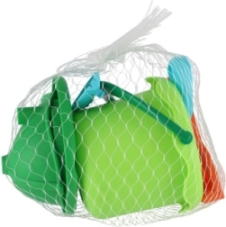 Lagan plastični set u živim bojama smješten je u praktičnoj mrežici – idealan za pješčanik i za more.