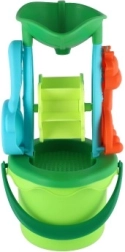 Praktični set kombinira kantu sa sitom, lopaticu i grabljice – idealna oprema za gradnju dvoraca i prosijavanje pijeska.