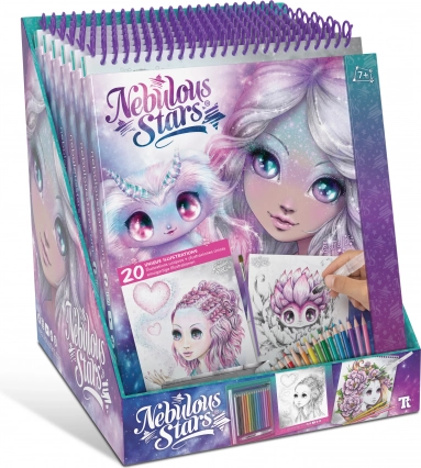 Vodene bojanke Nebulous Stars s 20 ilustracija i 15 flomastera. Kreativna zabava za djecu.