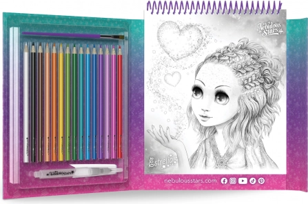 Uživajte u svijetu Nebulous Stars s ovim jedinstvenim bojankama koje sadrže 20 ručno crtanih ilustracija i 15 vodenih flomastera. Savršeno za kreativnu djecu!