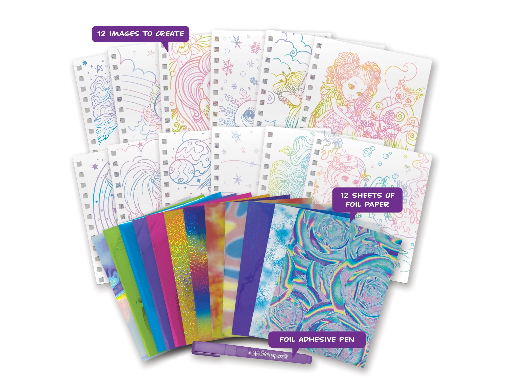- 12 različitih folijskih listova – holografski, blještavi i dugini efekti