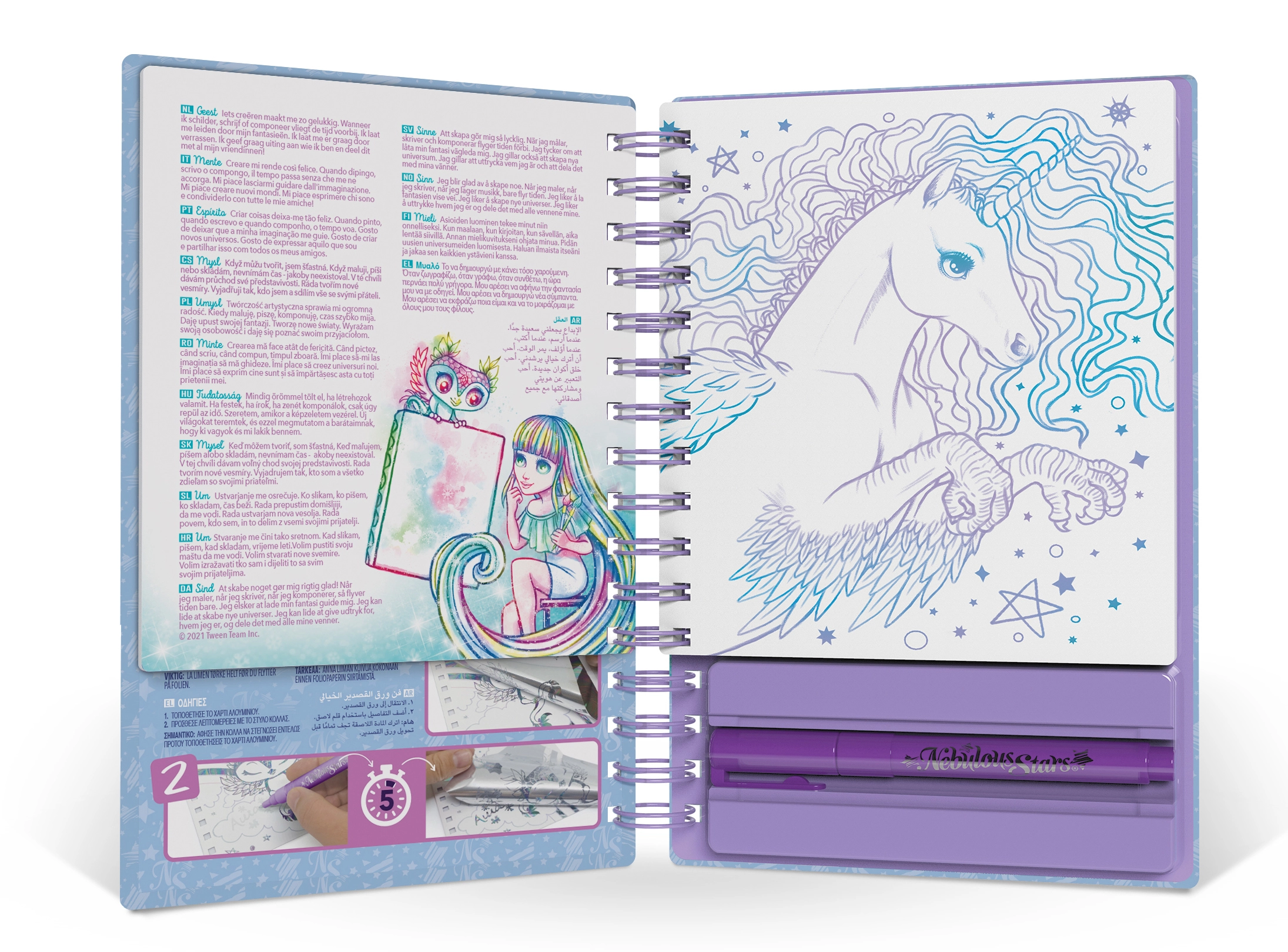 Uronite u čarobni svijet NEBULOUS STARS i pretvorite ilustracije u zasljepljujuća umjetnička djela. Zahvaljujući samoljepljivim motivima i priloženim folijama djeca u trenu stvaraju sjajne, blještave efekte bez upotrebe ljepila ili škara. Spiralni uvez osigurava udobno listanje i rad bilo gdje na putu.