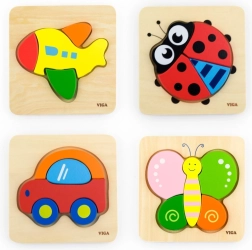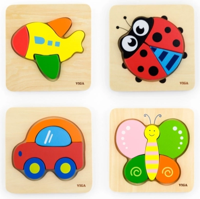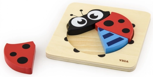 Otkrijte preslatke drvene mini puzzle s motivom bubamare brenda VIGA. Četiri čvrsta dijela na drvenoj podlozi potiču finu motoriku, koordinacijske vještine i prepoznavanje oblika i boja. Glatki rubovi, netoksične boje i kvalitetna izrada osiguravaju sigurnu igru za najmlađe.