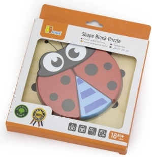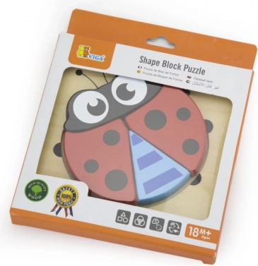Ova jednostavna i privlačna drvena slagalica idealna je kao prve puzzle za djecu. Zahvaljujući 4 robusna dijela koji točno naliježu u oblik na drvenoj osnovi, dijete brzo shvaća princip slaganja i s veseljem stvara sliku simpatične bubamare. Igra potiče koncentraciju, strpljenje i početno logičko razmišljanje.