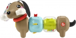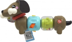 Aktivni jazavčar FISHER-PRICE izvrstan je prvi „psí prijatelj” za bebe od 6 mjeseci. Zahvaljujući kompaktnim dimenzijama lako stane u torbu i zabavit će dijete na putu. Igračka kombinira prozirni dio sa zvečećim kuglicama, okretne elemente i klapajući repić – svaki dodir i pokret nagrađuju dijete zvukovima i vizualnim efektima.