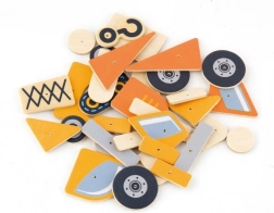 Šareni drveni oblici sa zaobljenim rubovima potiču kreativnost i finu motoriku djece od 3 godine.