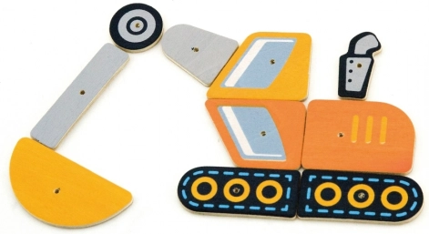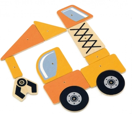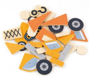 Otkrijte zabavnu i edukativnu igru u duhu Montessorija. Djeca mogu reproducirati predloške građevinskih vozila ili stvarati vlastite ideje. Dijelovi imaju zaobljene rubove i prethodno izbušene otvore, pa se lako i sigurno pričvršćuju na plutenu ploču.