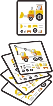 Kartice s predlošcima inspiriraju djecu da sastave bager, dizalicu ili kamion te ih uče postupnom i sustavnom radu.