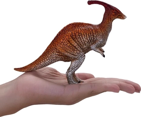 Figurica vjerno prikazuje realistični izgled Parasaurolophusa, a ističe se precizno odabranim smeđe-crvenim bojanjem.