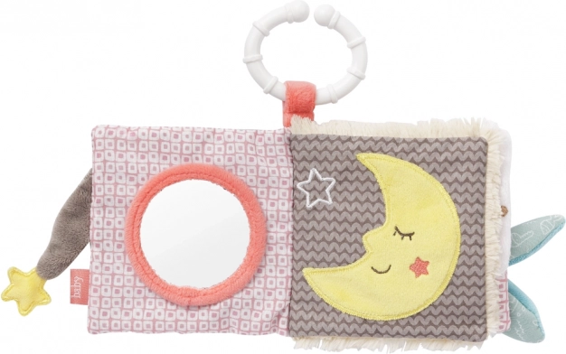Interaktivna plišana knjižica, od ugodnog materijala i s veselim dizajnom, potiče djecu na uključivanje i istraživanje novih taktilnih i slušnih doživljaja. Dodir, sluh i vid vaše djece bit će potaknuti ovom igračkom, a djeca će se brzo sama zabaviti. Zahvaljujući plastičnom C-prstenu, knjižicu možete lako pričvrstiti bilo gdje.