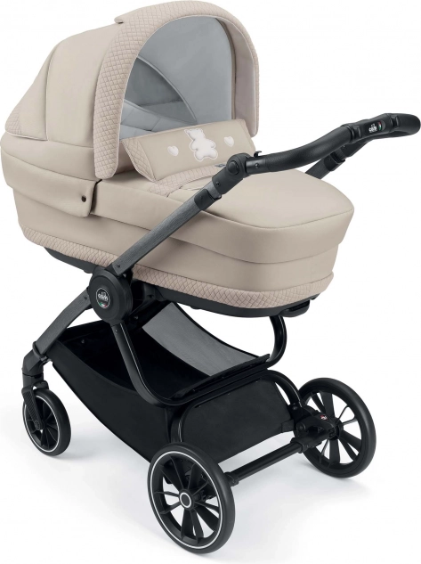 Kolica JOY Romantični ističu se svojim romantičnim dizajnom, s ukrasnim bijelim prošivom i motivom medića sa srčekima. Prostrana košara dizajnirana je za laku manipulaciju, s jednostavnim odvajanjem od podvozja. Zahvaljujući svojim osloncima može se koristiti i kao njihaljka za uspavljivanje djeteta.