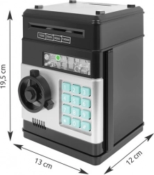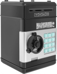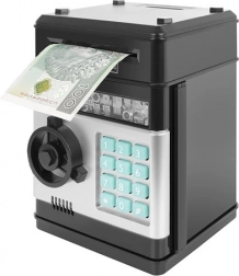Naučite djecu pametno upravljati novcem uz ovu elektroničku kasicu u obliku mini sefa. Omogućuje umetanje novčanica i kovanica, otvara se nakon unosa četveroznamenkastog PIN-a i nudi svjetlosne i zvučne efekte uključujući glas na engleskom. Idealno za djecu od 6 godina – zabavan i siguran način učenja štednje.