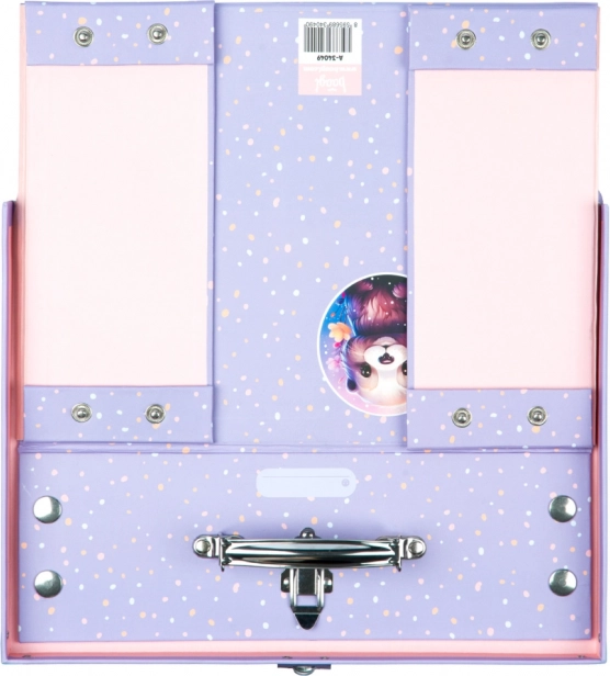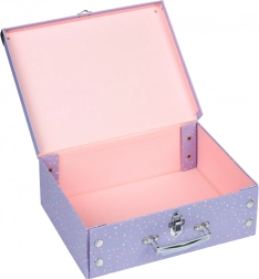 Kovčeg kombinira razigran dizajn s praktičnom uporabom. Metalna ručka i ojačani uglovi osiguravaju izdržljivost i čvrstoću.