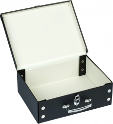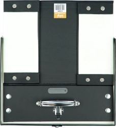 Torbica je opremljena metalim kutovima i klasičnom kopčom za sigurno zatvaranje. Osim toga, ima drukere koji omogućuju lako sklapanje i rasklapanje.