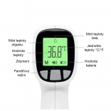 Toplomjer je multifunkcionalan – osim tjelesne temperature mjeri i temperaturu predmeta, primjerice bočice s mlijekom. Upravlja se intuitivno, uključuje automatsko isključivanje nakon 10 s, prebacivanje °C/°F i memoriju 20 mjerenja za praćenje stanja. U pakiranju se dobivaju i 2× AAA baterije te praktična vrećica.