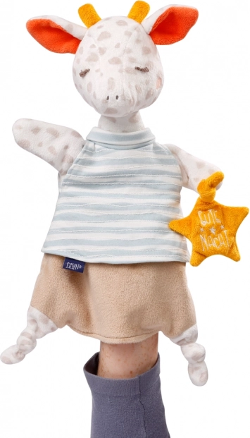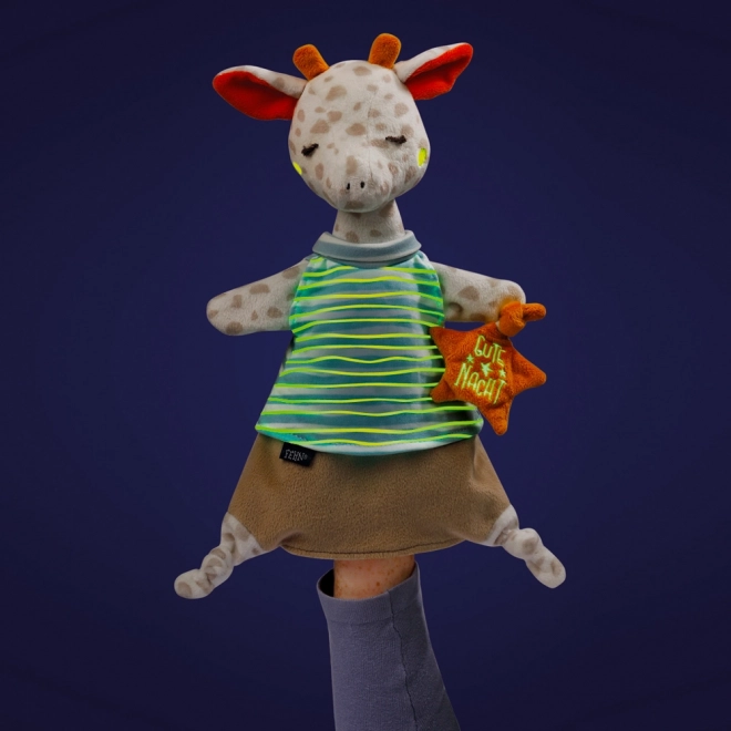 Mazni plišanac danju, a navečer pripovjedač bajki i čuvar mirnog sna – to je lutka-ručica žirafa iz kolekcije Gute Nacht. Preslatka plišana igračka od nježnog velura bit će vjeran pratitelj vašeg djeteta. Može se koristiti kao lutka-ručica pomoću koje možete dijete učiti novim vještinama, pričati bajke prije spavanja ili jednostavno poticati njegovu maštu i kreativnost. Svjetleći elementi djetetu pružaju osjećaj sigurnosti i pomažu mu lakše zaspati.