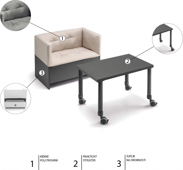 - 2u1: komoda za previjanje i dječja sofa sa stolićem