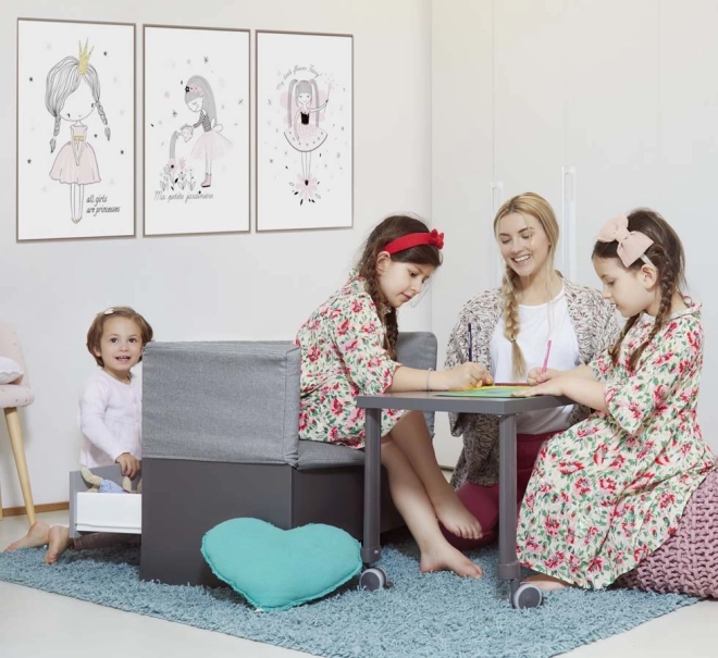 Kad razdoblje previjanja završi, komodu jednostavno preuredite u ugodnu sofu s mekanim podstavljenjem i praktičnim stolićem za igru i kreativnost.
