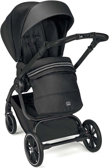 Sportsko sjedište se može potpuno podesiti do ležećeg položaja, nudi mekanu podstavu, veliku tendu i podstavljene sigurnosne pojaseve za sigurnu i udobnu vožnju. U slučaju lošeg vremena cijenit ćete pokrivalo s visokim zasjenjenjem, koje se lako skida pomoću patentnih zatvarača. Set uključuje i torbu za prematanje u usklađenom dizajnu te kabanicu. Podvozje nije u pakiranju.
