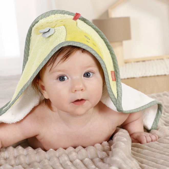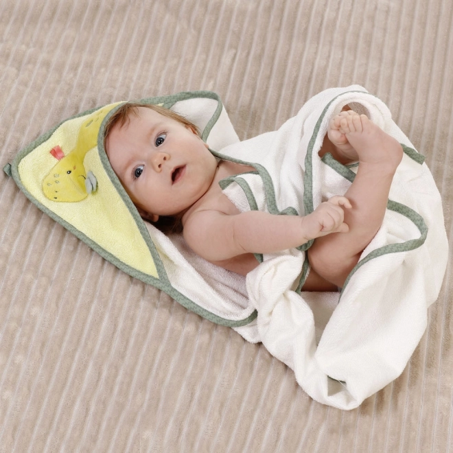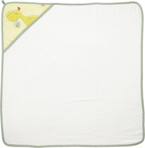 Upijajući dječji ručnik s motivom simpatičnog dinosaura nježno će osušiti bebicu i zaštititi je od hladnoće i propuha. Mekani, pahuljasti materijal poziva na sigurno i ugodno umatanje nakon kupanja. Ručnik je prikladan za svakodnevnu upotrebu. Može se prati u perilici rublja na 60 °C. Pomoću praktične kukice ručnik se može objesiti na vješalicu.