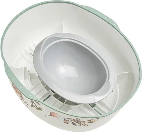 Protuklizna obrada donjeg dijela povećava sigurnost pri upotrebi, a izvadiva sabirna posuda omogućuje brzo i higijensko čišćenje. Proizvod je prikladan otprilike od 18 mjeseci do 4 godine, a zahvaljujući univerzalnim dimenzijama uklapa se u većinu kućanstava.