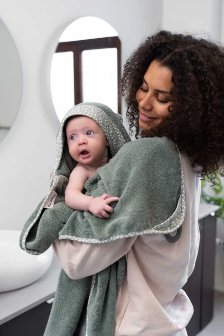 Ručnik je sašiven od nježne organske pamuk, koja je blaga prema osjetljivoj dječjoj koži. Materijal je upijajući, mekan i ugodan na dodir, s neovisnim certifikatom OEKO‑TEX. Zahvaljujući dimenziji 90 × 100 cm odlično služi od novorođenčeta do djeteta u dobi hodanja i većeg djeteta.