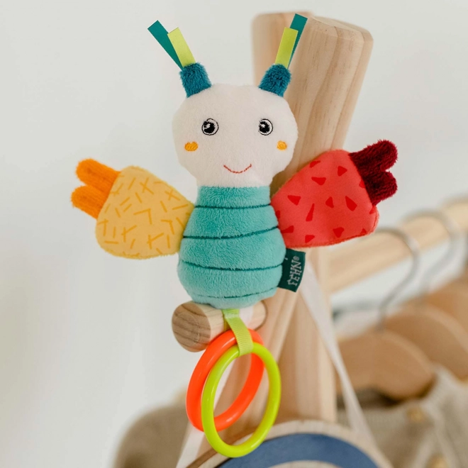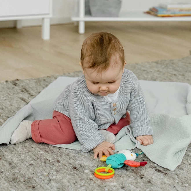 Plišana zvečka s mnogo aktivnih elemenata kao što su prsten za držanje, zvečka, mehanizam za pištanje i šuškavi papir. Igračka za hvatanje razigrano potiče djetetov sluh, vid, dodir i zdravo hvatanje – idealna kao poklon za dječake i djevojčice za rođenje, rođendan ili krštenje.