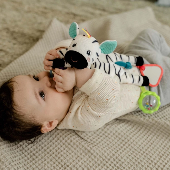 Plišana zvečkica s mnogo aktivnosti elemenata kao što su prsten za držanje, zvečkica, mehanizam za pištanje i šuškavi papir. Igračka za hvatanje razigrano potiče sluh djeteta, vid, dodir, zdravo držanje i logičko razmišljanje – idealna kao poklon za dječake i djevojčice za rođenje, rođendan ili krštenje.