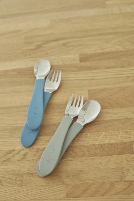 Žličica i vilica imaju higijenski „nekontaktni“ držač koji sprječava izravan kontakt s površinama. Ručka pribora je ergonomska, pa će je lako držati i djeca koja tek uče samostalno jesti. Zahvaljujući silikonskoj ručki, žličica neće kliziti iz dječjih ručica.
