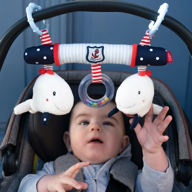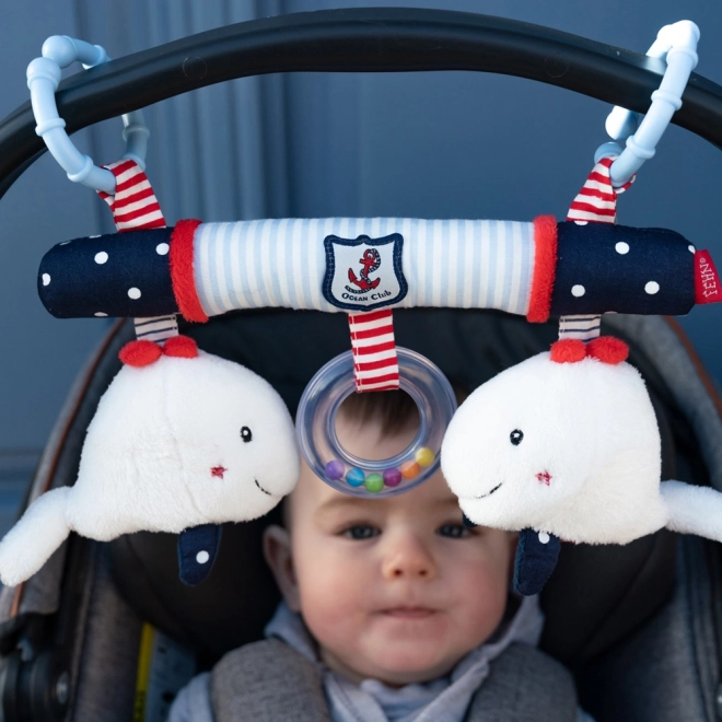 Ova inovativna hrazda je dizajnirana za aktivaciju osjetila djeteta i razvoj koordinacije ruku i očiju. Cviljenje i zveckanje kitova iz kolekcije Ocean Club privlači pažnju i potiče znatiželju. Avanture s ovom igračkom uvijek će biti iznimne i zabavne!
