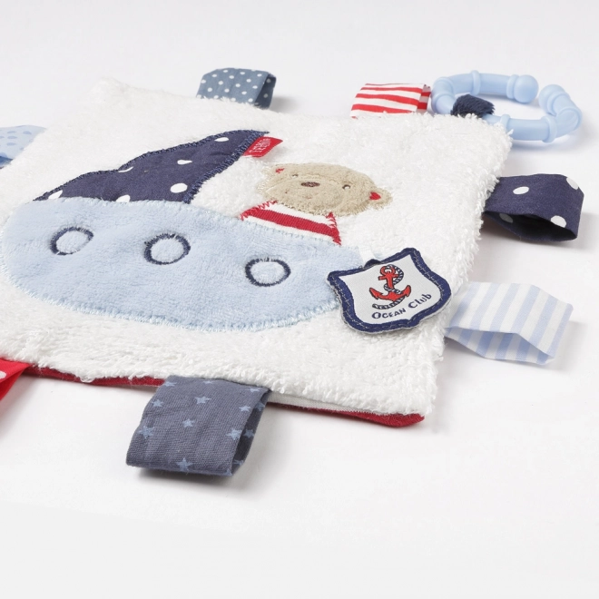 Dječji teddy iz kolekcije Ocean Club donosi u život vašeg djeteta radost zahvaljujući škripavom papiru, piskanjem i različitim dodirnim elementima koji potiču znatiželju i treniraju sluh i dodir. Izrađen od mekih materijala, mami djecu na maženje i istraživanje.