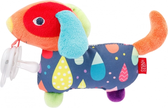 Preslatka duda iz kolekcije COLOR Friends savršena je za male istraživače svijeta. Sve praktične dude s drškom ili bez nje mogu se pričvrstiti na silikonski prsten. Igračka za dudu nije samo lijepa svojim izraženim bojama i uzorcima, već je i izuzetno praktična. Skriveno zvečkalo u plišanom psiću potiče djetetov sluh, hvatanje i dodir, kao i finu motoriku. Šareni psić za hvatanje idealan je kao dar za rođenje, krštenje ili rođendan.