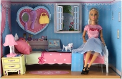 Set sadrži krevetić, toaletni stolić, lampu i kućne ljubimce za potpunu igru.