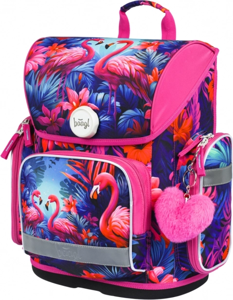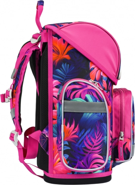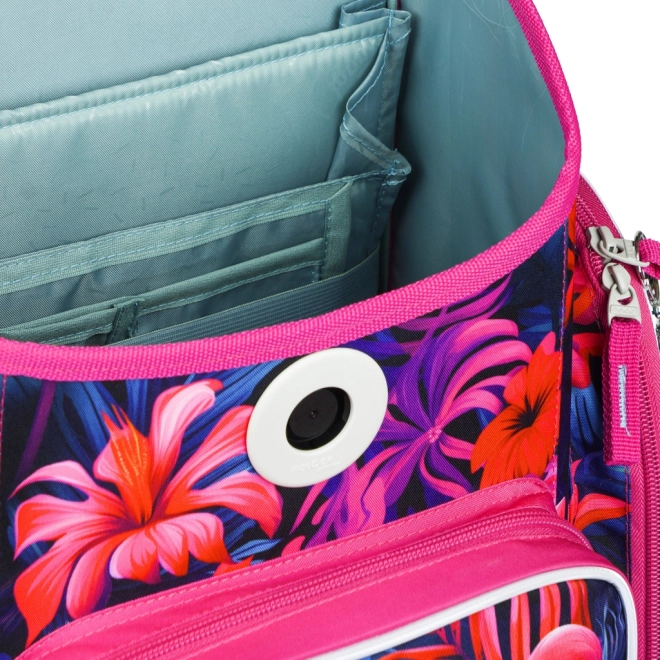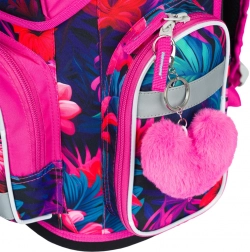 Stilna i funkcionalna školska aktovka s motivom flamingosa dizajnirana je za djecu od 1. razreda osnovne škole. Zahvaljujući sustavu ERGO ADJUSTABLE SYSTEM lako podešavate visinu i položaj traka tako da aktovka savršeno pristaje leđima. Ergonomski oblikovana leđa te potpuno podesive ramene, prsnične i bočne kompresijske trake brinu se za udobnost tijekom cijelog školskog dana.