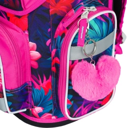 Aktovku nadopunjuje jednoslojna pernica bez punjenja i čvrsta vrećica s karabinerom za pričvršćivanje na aktovku. Sve u razigranom tropskom motivu s flamingosima.