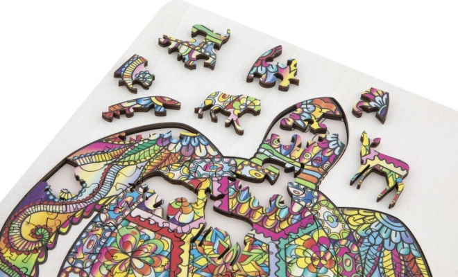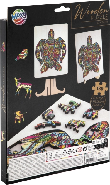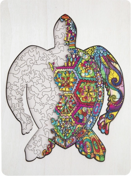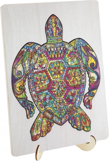 Drvena kontur slagalica u obliku kornjače s raznovrsno oblikovanim dijelovima idealna je za djecu i odrasle. Sadrži dijelove u obliku životinja i predmeta, što dodaje atraktivnosti i zabavi.