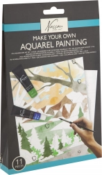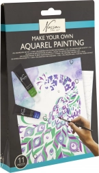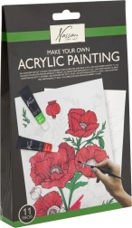 Set nudi četiri zadivljujuća motiva: planine, kuće, paun i makovi. Svako pakiranje sadrži 11 komada slikarskog pribora, što uključuje ne samo boje, već i vodič i inspiraciju za stvaranje vlastitog djela.