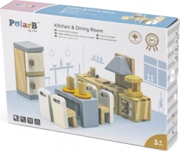 Drvena garnitura namještaja za kuću za lutke Kuhinja i blagovaonica
