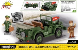 Dodge WC-56 Command Car je legenda među vojnim vozilima koja je igrala ključnu ulogu tijekom Drugog svjetskog rata. Ovaj model u mjerilu 1:35 prikazuje autentične povijesne oznake iz 1944. i posebne konstruktorske blokove za kultnu rešetku hladnjaka. Ima rotirajuće kotače s gumenim gumama i mjesto za figurice. U pakiranju su dvije figurice inspirirane stvarnim povijesnim osobama – američki general i vojni vozač.