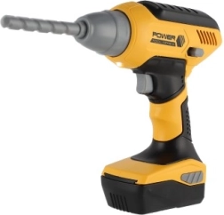 Ova dječja akumulatorska bušilica u prepoznatljivoj žuto-crnoj kombinaciji vjerno oponaša pravi alat i sjajan je pratitelj malim pomagačima u radionici i kod kuće. Pritiskom na okidač nastavak se zavrti, a bušilica proizvodi autentične zvukove bušenja koji pojačavaju doživljaj igre.