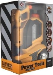 Perilica omogućuje podešavanje mlaza vode pomoću okretnog nastavka na kraju crijeva. Paket uključuje i spužvicu, brisač i krpicu, tako da djeca imaju sve što im je potrebno za igru.
