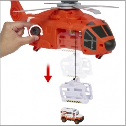 Helikopter Matchbox Action Drivers je dug preko 40,5 cm i pruža doživljaje stvarnih spašavanja. Krenite u akciju, pritisnite ručicu na držaču za aktivaciju elise i uputite se na mjesto događaja. Kada stignete, spustite vitlo za prihvat metalnog vozila u mjerilu 1:64. Nakon slijetanja, helikopter možete pretvoriti u spasilačku stanicu s aktiviranim GPS-om.