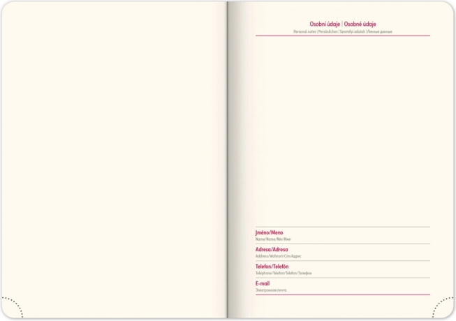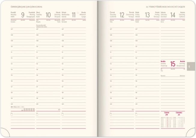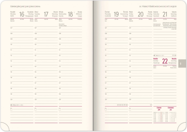 Tjedni planer Notique Twill 2025 u elegantnoj plavo-srebrnoj boji savršen je pomoćnik za organizaciju vaših dana. Nudi pregledan tjedni raspored s češko-slovačkim kalendarom i višejezičnim opisima.