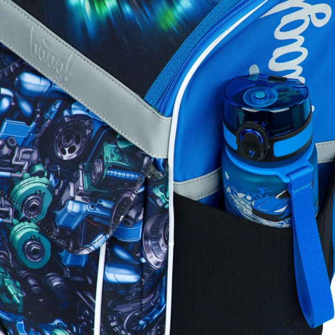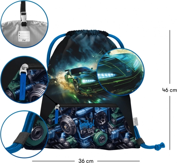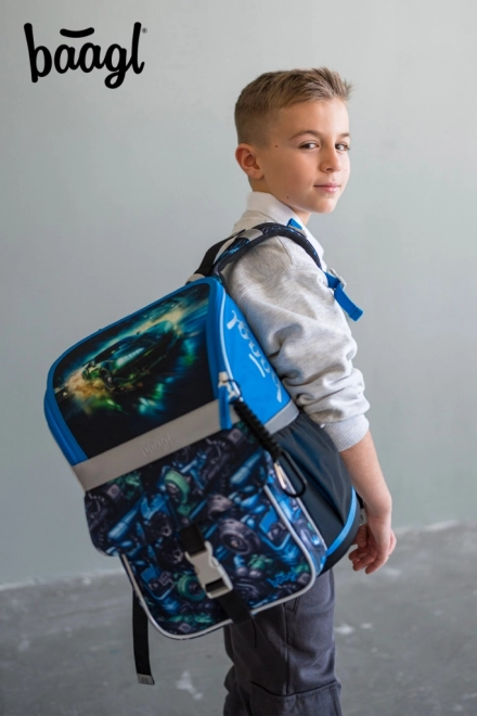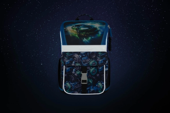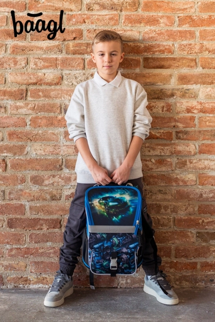 Školski set Baagl Zippy trkaći automobil za prve školske godine uključuje ergonomsku aktovku s podesivim ERGO ADJUSTABLE SYSTEM, jednokatnu pernicu i vrećicu s džepom. Aktovka ima preklopni sustav otvaranja, praktičan organizator, reflektirajuće elemente i vodootporan materijal za svakodnevnu pouzdanost.