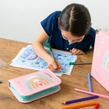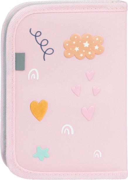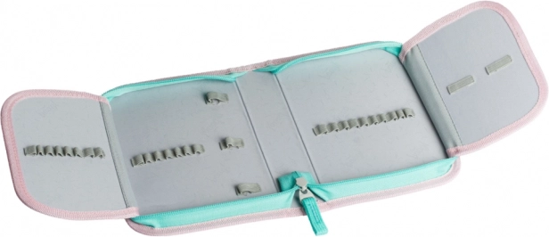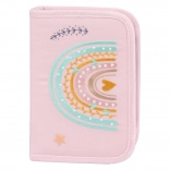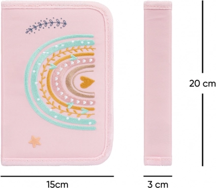 Praktična i moderna pernica u ružičastim pastelnim tonovima s motivom duge razveselit će školarce i studente. Jednostruka izvedba s dvama preklopima omogućuje preglednu organizaciju i brz pristup svim potrepštinama. Izdržljivi materijali i YKK patent jamče dug vijek trajanja pri svakodnevnoj uporabi.