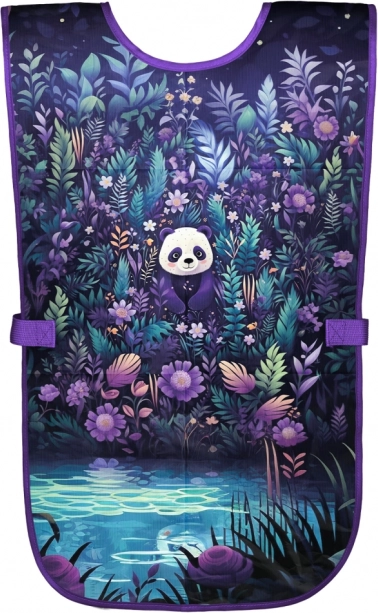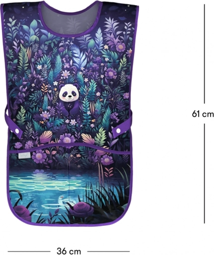 Zaigran dizajn s pandom i živim bojama oduševit će djecu, dok će izdržljiva, lako periva tkanina zaštititi majicu i duksericu od boja, vode i ljepila. Pregača je idealna za likovni odgoj, radne aktivnosti te kućno stvaranje i kuhanje.