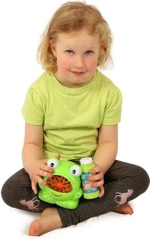 Stroj za mjehuriće u obliku žabe je zabavna igračka za djecu koja stvara mnoštvo mjehurića da zabavi djecu satima. Sadrži punjenje za trenutnu upotrebu.